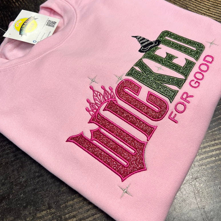 Ready To Ship! Wicked For Good Glitter Embroidered Crewneck
