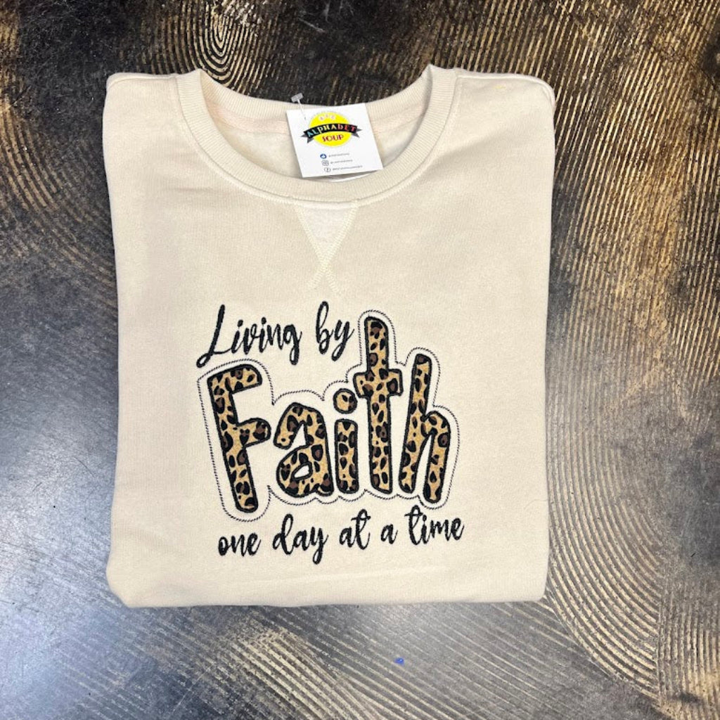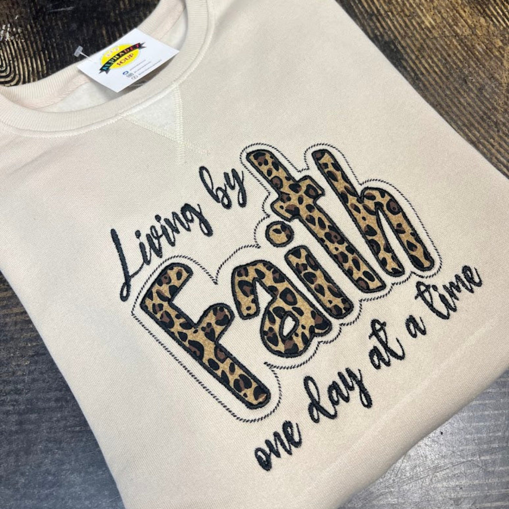 Ready To Ship! Living By Faith One Day at a Time Embroidered Crewneck