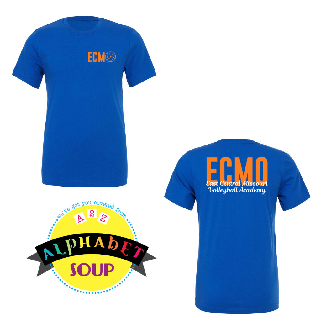 Blue t-shirt with 'ECM' and 'FCMO East Central Missouri Volleyball Academy' text