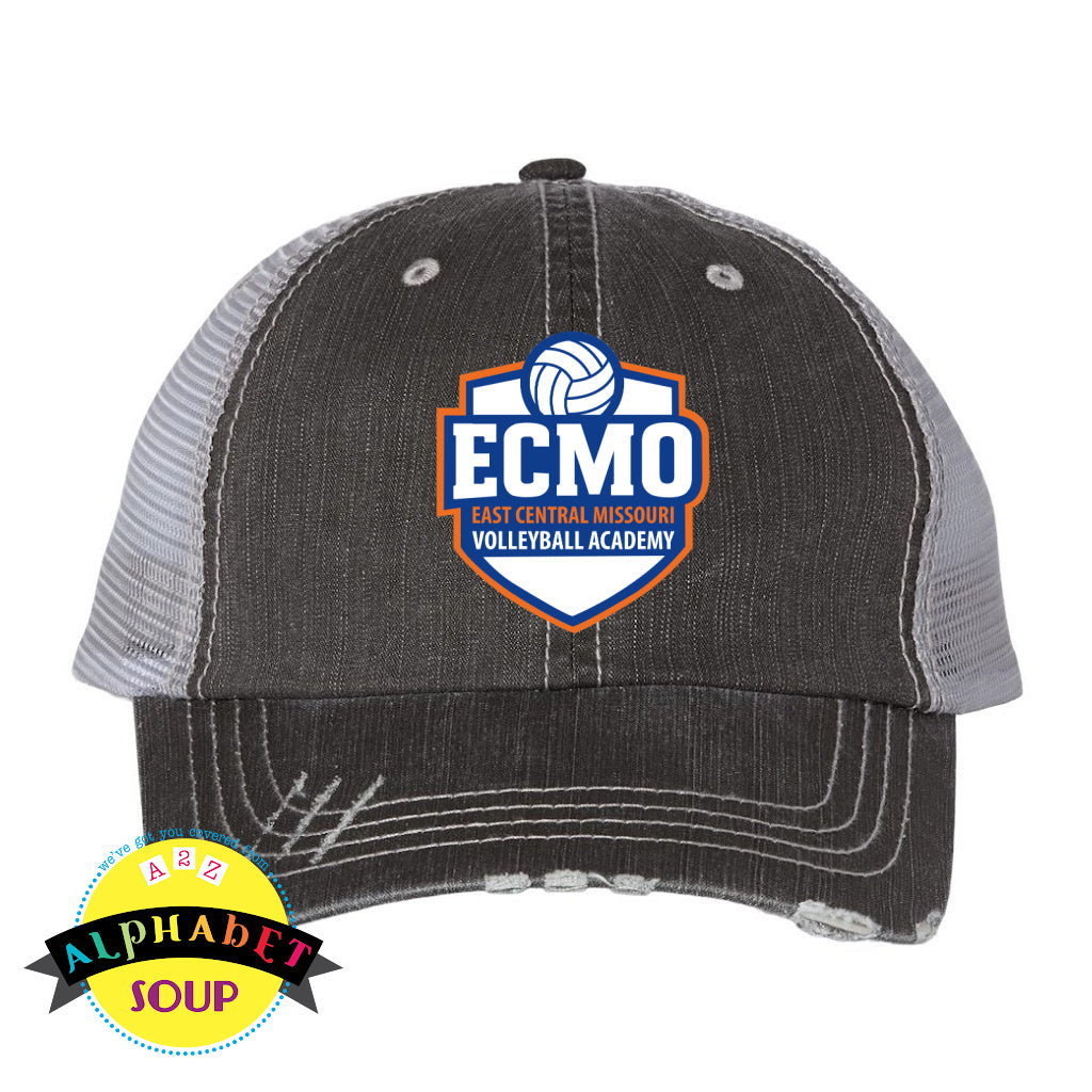 Black and graytrucker cap with ECMO East Central Missouri Volleyball Academy logo.