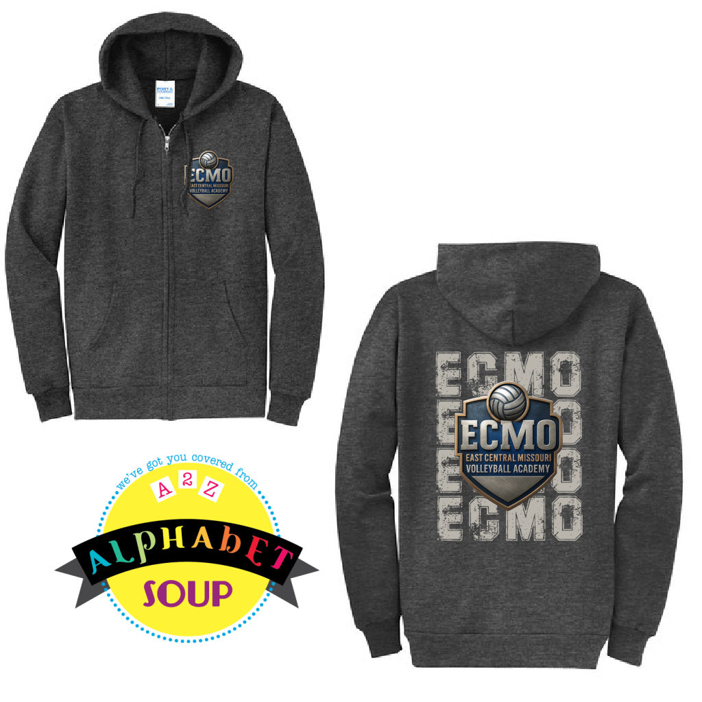 Alphabet Soup Designs has partnered with ECMO to bring you a selection of personalized Team Spirit Wear.  Port & Co's cozy sweats in their core weight are super comfy. This Full Zip Hoodie is your go-to before heading out the door!  It is the perfect item for layering on those days when the weather can't make up its' mind.
