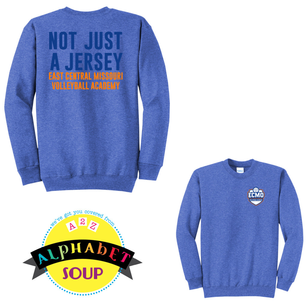East Central Volleyball not just a jersey design on blue crewneck sweatshirt