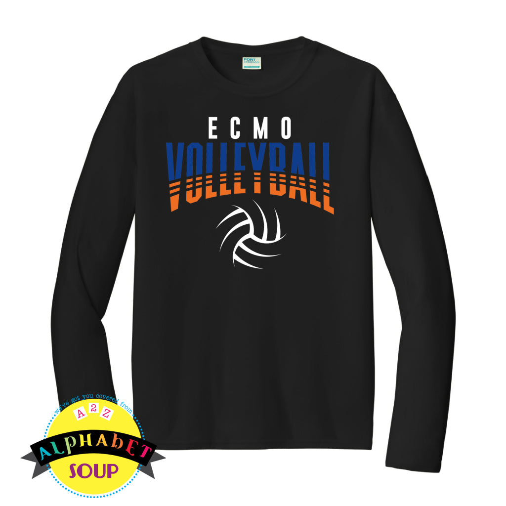 Black long-sleeve shirt with 'ECMO Volleyball' text and volleyball design