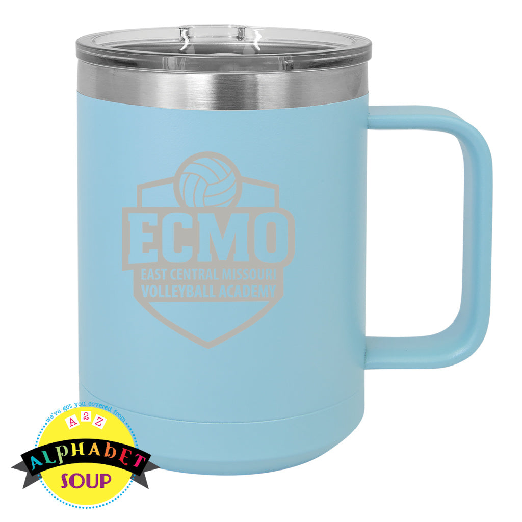 Orange mug with 'ECMO East Central Missouri Volleyball Academy' logo
