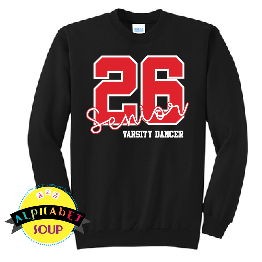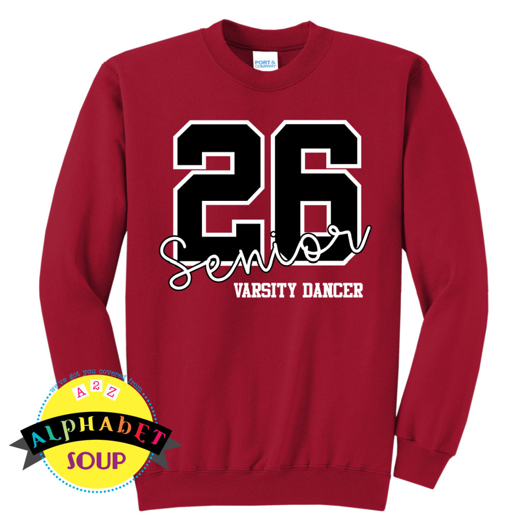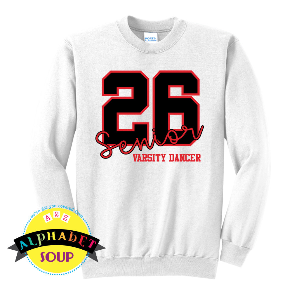 FZS REDLINE 26 Senior Varsity Dancer Crewneck Sweatshirt-Alphabet Soup loves the comfy Port & Company Crewneck Sweatshirts! The designs that we offer, pair perfectly with the top-quality products used by Alphabet Soup!