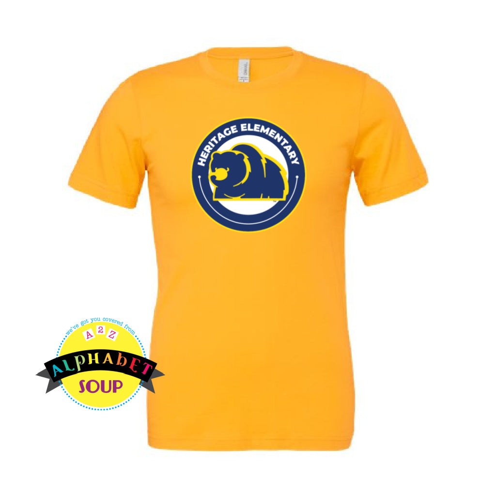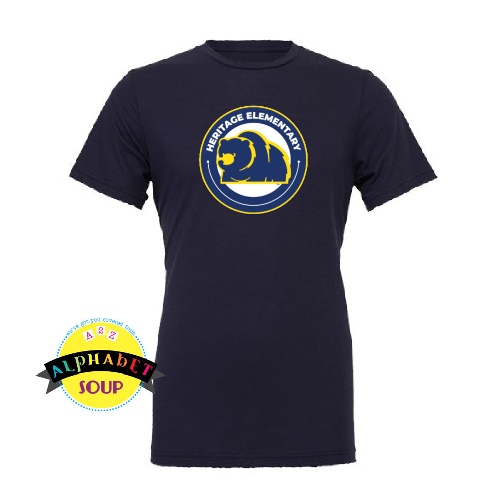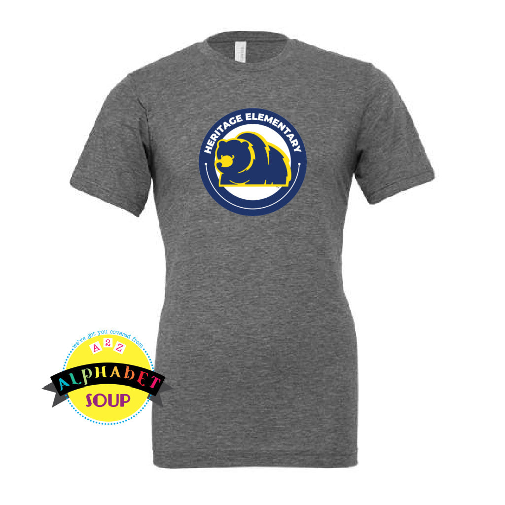 Alphabet Soup Designs has partnered with Heritage Elementary to bring you a selection of personalized School Spirit Wear. The Heritage Elementary Logo design looks amazing on the adult and youth, Bella Canvas Tees and Raglans, District Tanks and Port & Co Sweatshirt styles.