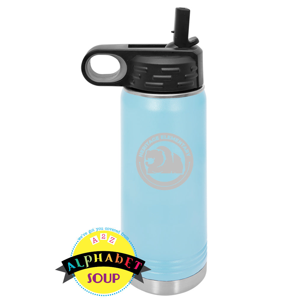 Alphabet Soup Designs has partnered with Heritage Elementary to bring you a selection of personalized Team Spirit Wear. These Stainless Water Bottles are laser etched for long lasting design. These water bottles come in 4 different sizes!