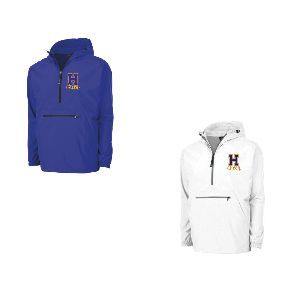 Alphabet Soup Designs has partnered with Francis Howell Vikings Cheer Team to personalize team spirit wear. This Unlined Pack-N-Go Pullover by Charles River is embroidered with the Howell Viking Logo and Cheer directly below. Optional embroidered monogram can be added for an additional $5.