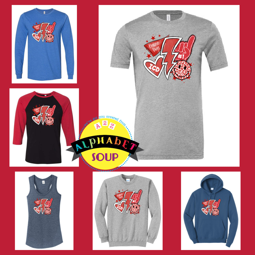 Alphabet Soup Designs has partnered with ICD School to bring you a selection of personalized Prairie Dog Spirit Wear. The ICD design look amazing on the adult and youth, Bella Canvas Tees and Raglans and Port & Co Sweatshirt styles.