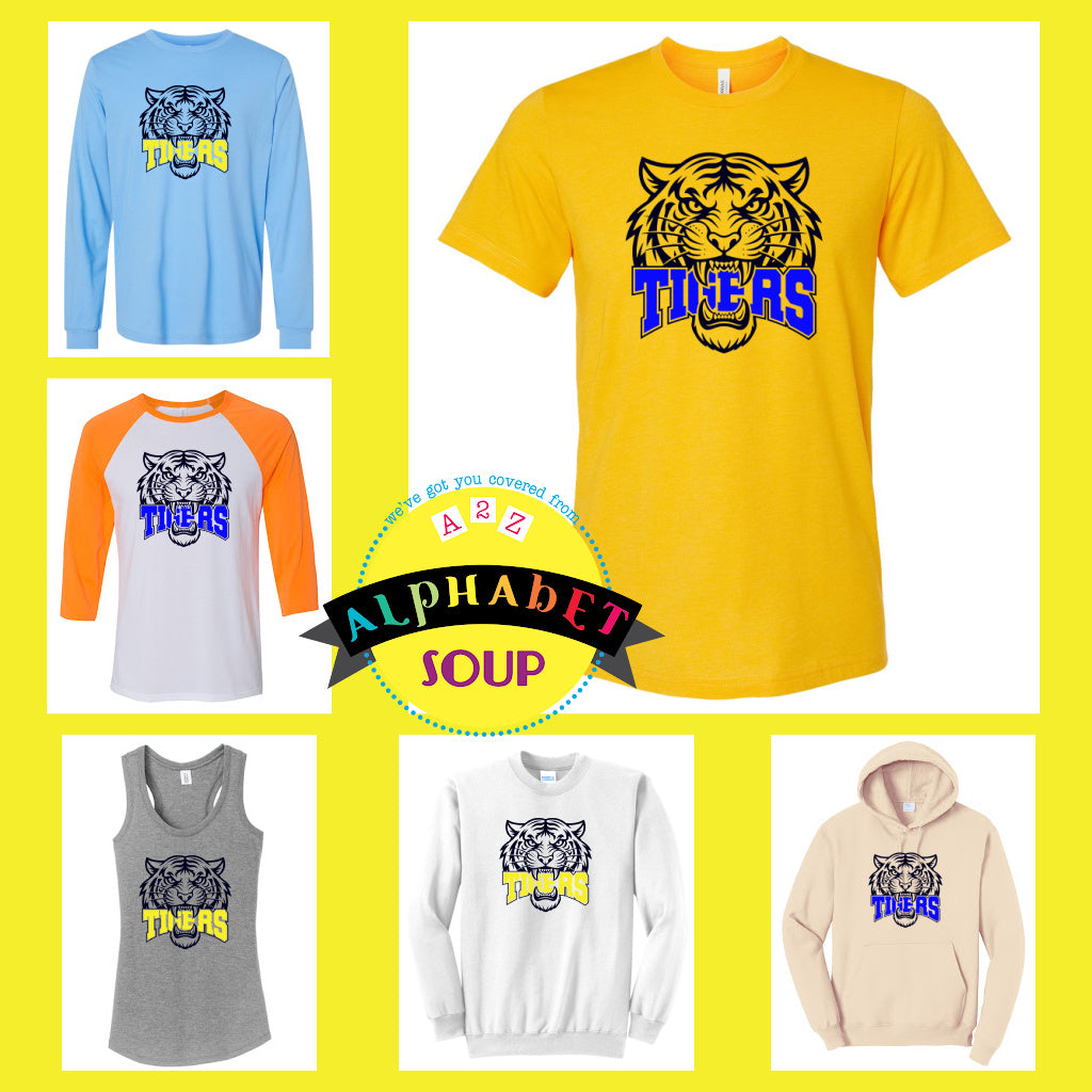 Alphabet Soup Designs has partnered with Kellison Elementary to bring you a selection of personalized School Spirit Wear. The Kellison Elementary Tiger Bite design looks amazing on the adult and youth, Bella Canvas Tees and Raglans, District Tanks and Port & Co Sweatshirt styles.
