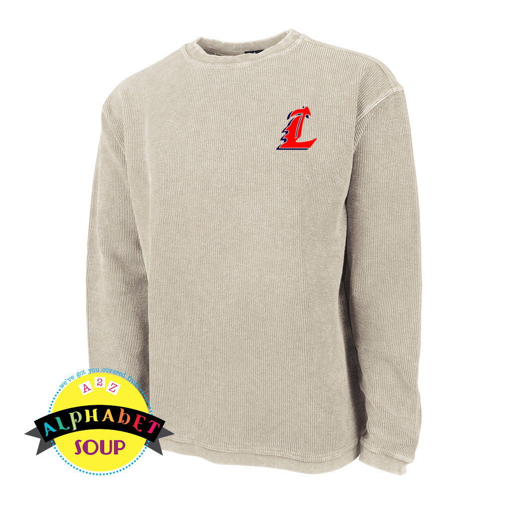 Alphabet Soup Designs has partnered with Liberty High School to bring you a selection of personalized School Spirit Wear. Love the vintage look? This Camden Crewneck Sweatshirt will soon become your favorite Fall sweatshirt from Charles River Apparel! CRA is our go-to for top quality apparel! We will embroider the Liberty High School logo on the left chest!