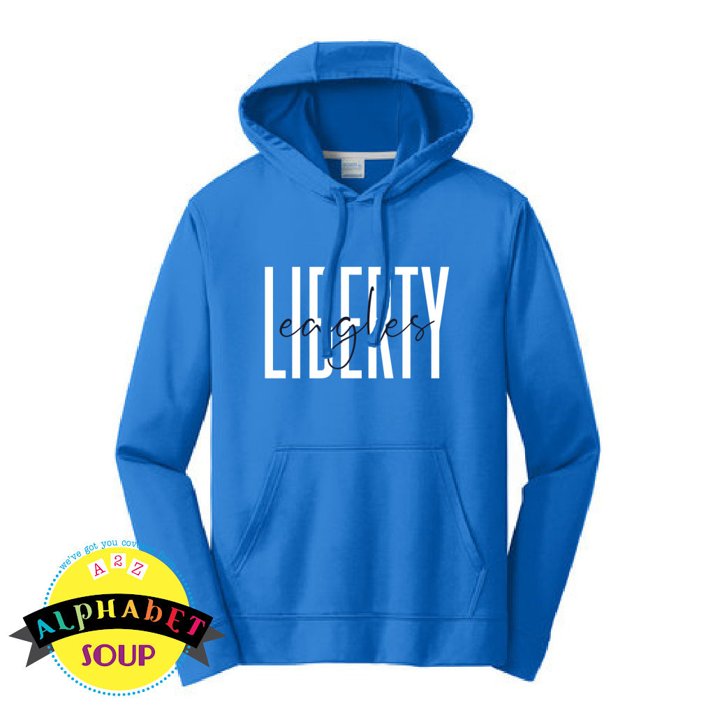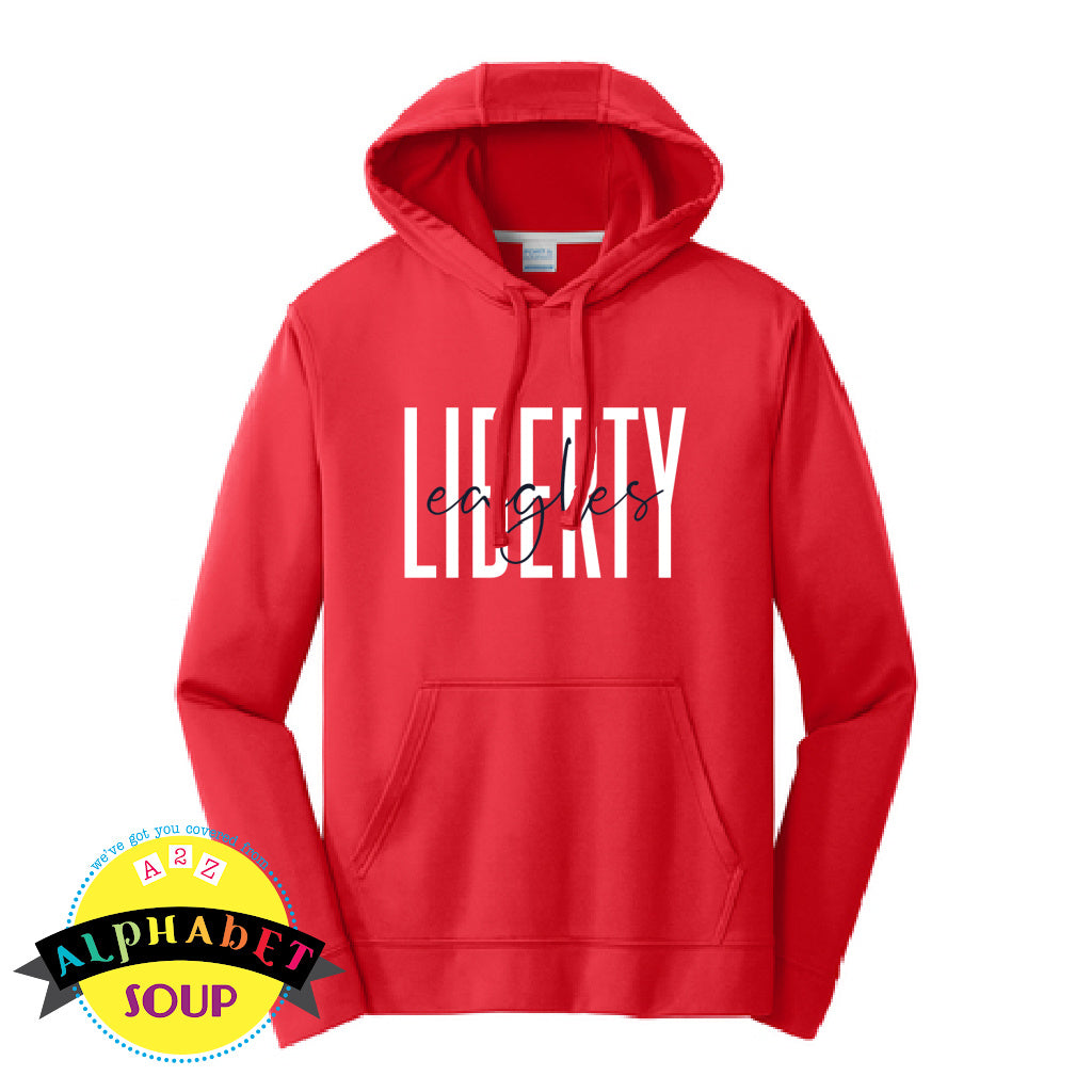 Alphabet Soup Designs has partnered with Liberty High School to bring you a selection of personalized School Spirit Wear. This Sport-Wick technology transforms anti-static fleece into an excellent warm up and cool down option. Your top layer releases moisture from inner layers, while keeping your skin comfortably dry. Choose one of the Liberty High School Designs to add to this Performance Hoodie Sweatshirt.