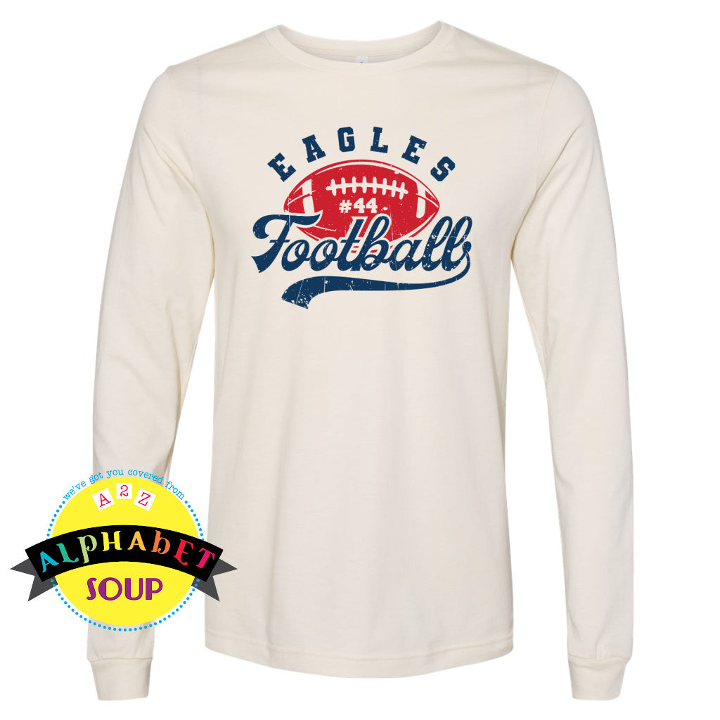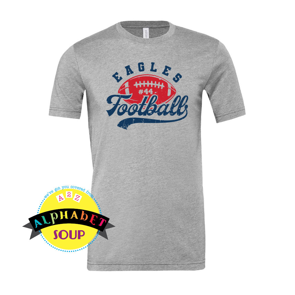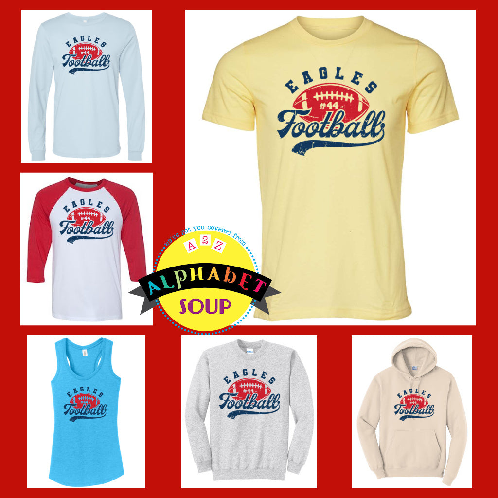 Alphabet Soup Designs has partnered with Jr Eagles to bring you a selection of personalized Team Spirit Wear. The Jr Eagles Distressed Football design looks amazing on the adult and youth, Bella Canvas Tees and Raglans, District Tanks and Port & Co Sweatshirt styles.