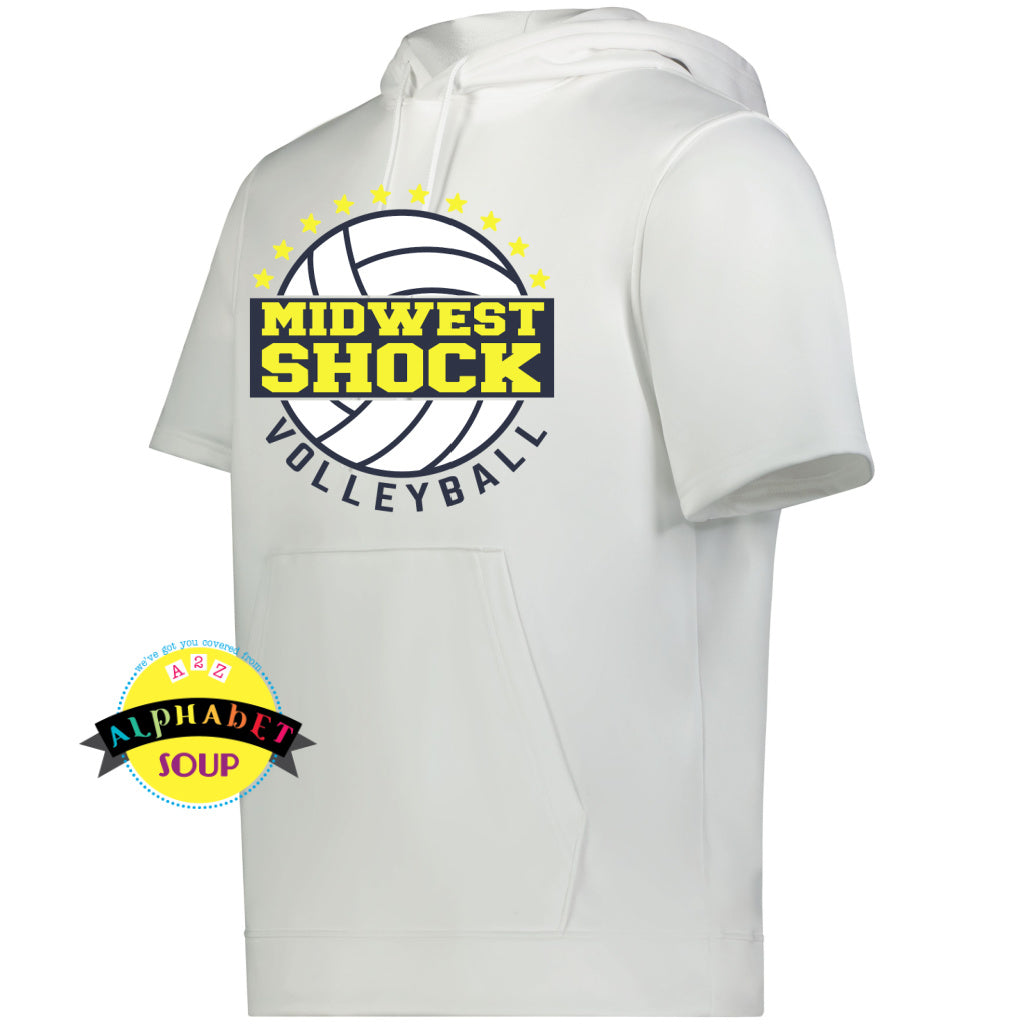 Alphabet Soup Designs has partnered with Midwest Shock to bring you a selection of personalized Team Spirit Wear. Augusta Sportwear offers this amazing Wicking Fleece short sleeve Sweatshirt that comes in the comfy hoodie style, that we can personalize with any of the Midwest Shock designs.