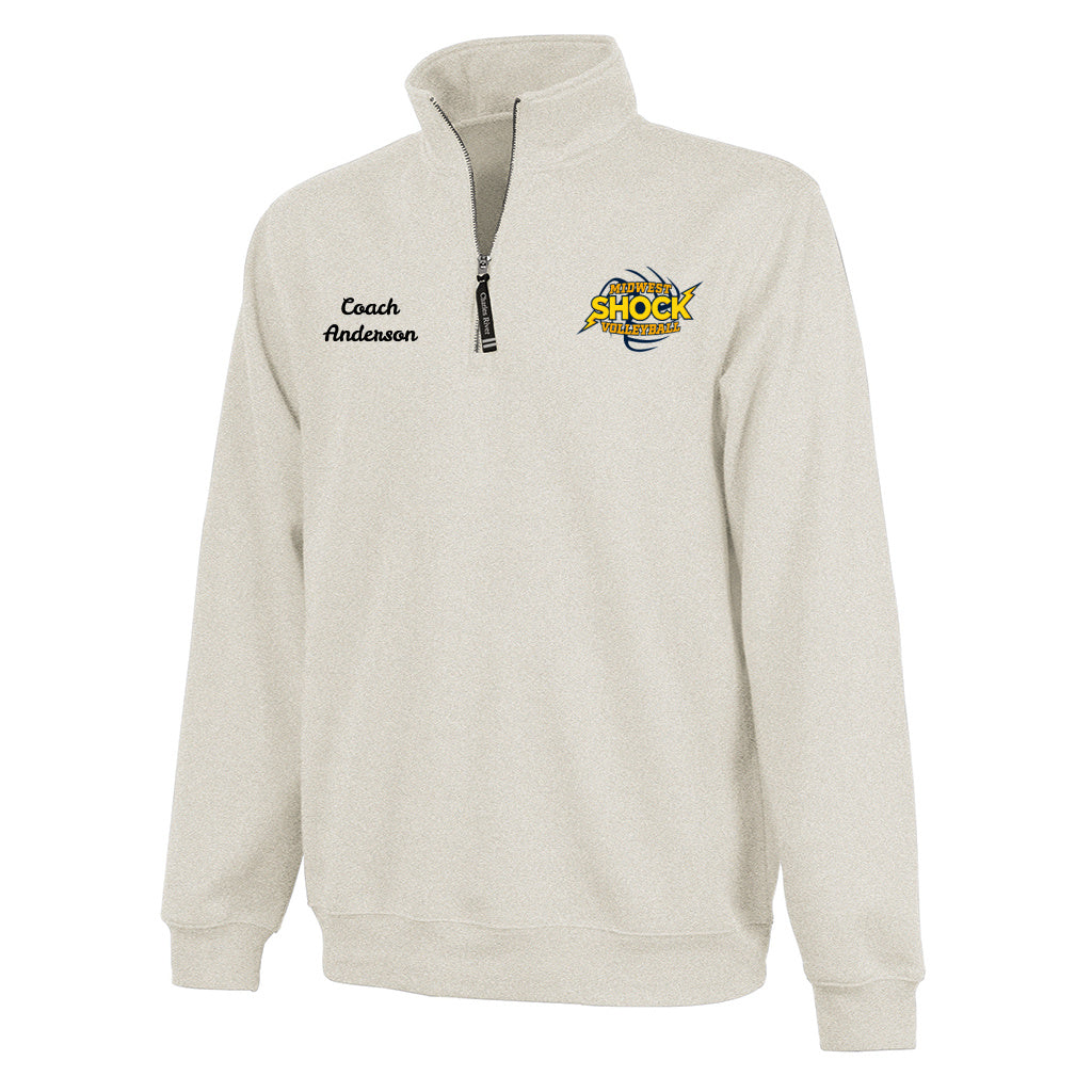 Get your Midwest Shock Volley Spirit Wear here! This Charles River Quarter Zip Sweatshirt is embroidered with Midwest Shock logo. A portion of the proceeds will be donated directly to the club.