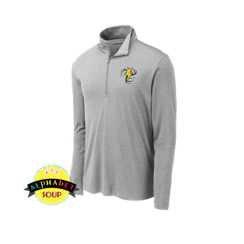 Alphabet Soup Designs has partnered with Midwest Shock to bring you a selection of personalized Spirit Wear. This stylish Sport Tek Endeavor 1/2 zip comes with Midwest Shock vinyl Logo. Each 1/2 Zip pullover is made with a subtle heather texture and moisture-wicking technology. This lightweight 1/2-zip will help you achieve all your performance endeavors.