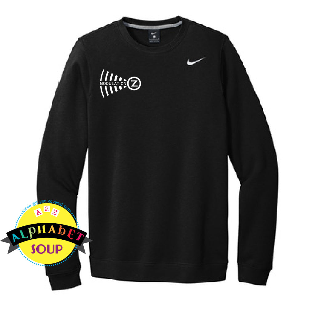 Alphabet Soup Designs has partnered with Modulation Z to bring you a selection of personalized Team Spirit Wear. The Nike crewneck sweatshirt is designed with brushed-back fleece for warmth and comfort. This premium sweatshirt is ideal for an active lifestyle. A contrast Swoosh logo is embroidered on the left chest, and the Modulation Z is embroidered on the right chest.