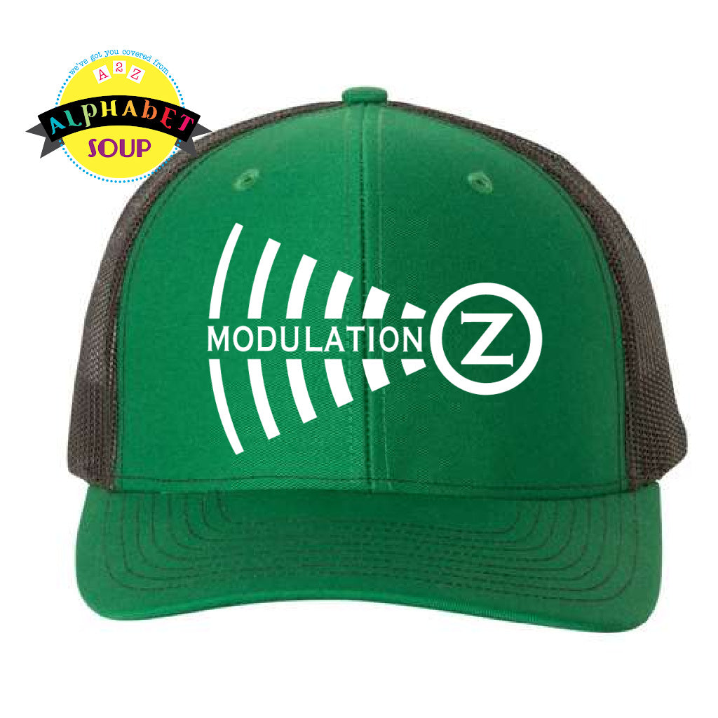 Alphabet Soup Designs has partnered with Modulation Z to bring you a selection of personalized spirit wear. The Richardson Snapback Trucker Hat is a structured six panel hat with the Modulation Z logo embroidered on the front.