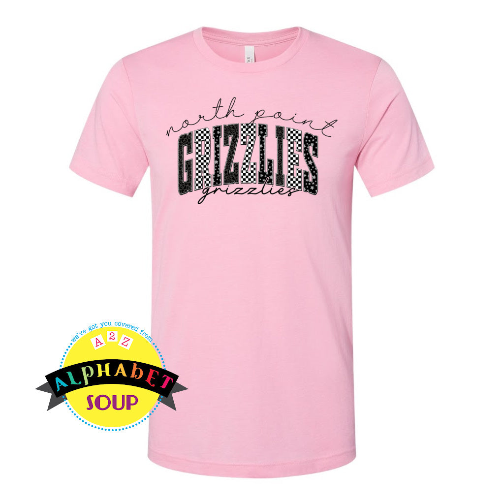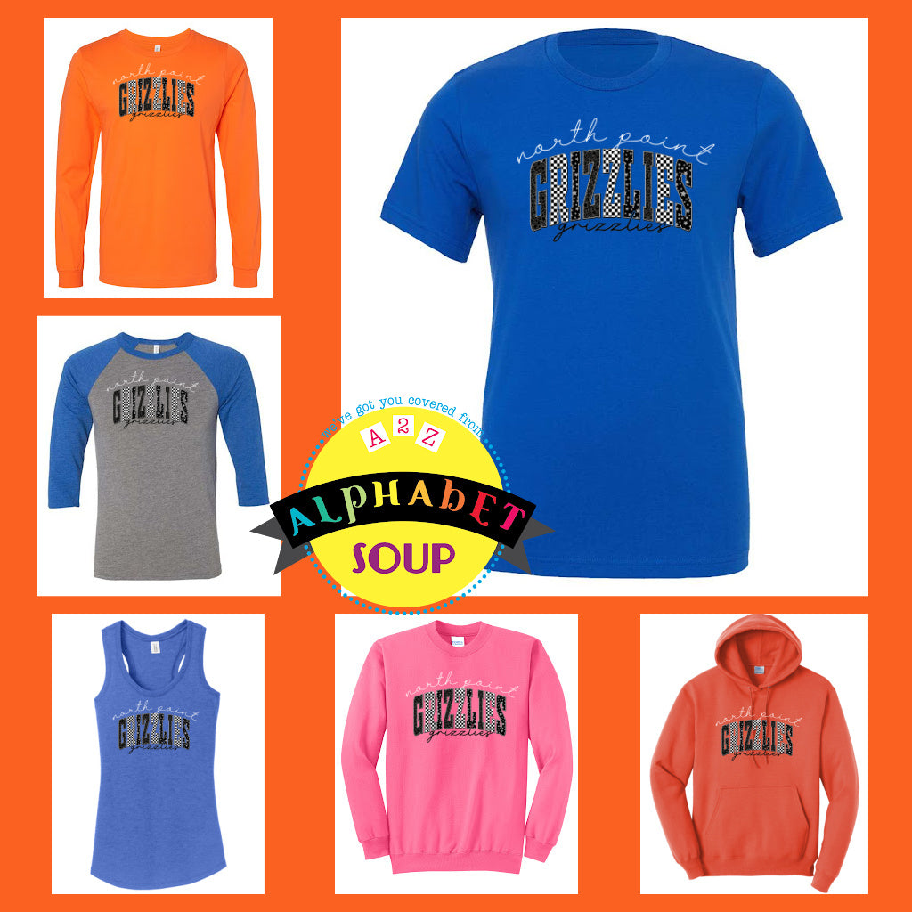Alphabet Soup Designs has partnered with North Point Middle School to bring you a selection of personalized Grizzlies Spirit Wear. The North Point Middle design looks amazing on the adult and youth, Bella Canvas Tees and Raglans, District Tanks and Port & Co Sweatshirt styles.