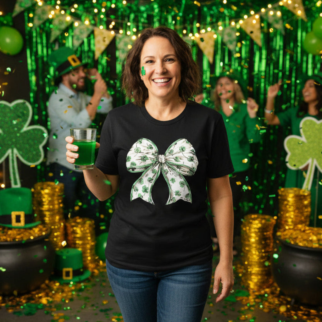 Big Shamrock Coquette Bow Short Sleeved Shirt-Ready to Ship!