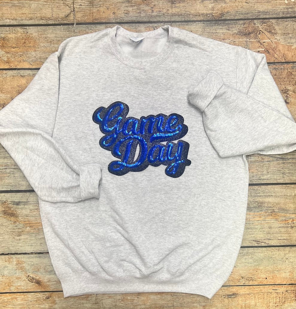 It's time to cheer on your favorite sport with our Game Day Large Patch Sweatshirts! These soft and comfy crewnecks are our go-to sweatshirts, we use Port & Co for top quality products. Choose from a variety of colored, sequence, and sport specific patches to match the sweatshirt color of your choice!