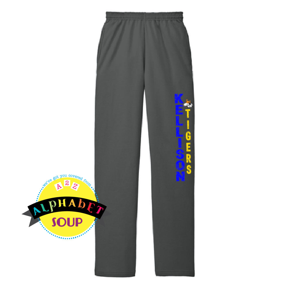 Alphabet Soup Designs has partnered with Kellison Elementary to bring you a selection of personalized School Spirit Wear. We've included a selection of apparel from Port & Co, including these cozy open-bottom cuff sweatpants with pockets! Choose your color of sweatpants, and the coordinating color of vinyl will be added down the leg, with the Kellison Elementary School Logo. The design colors will be as pictured, unless they are the same color as the article of clothing you picked, and would not be visible. We will then change the design colors to coordinate with your team or school. If you would like a specific color(s), please specify your request in the comments section at checkout. Thank you!