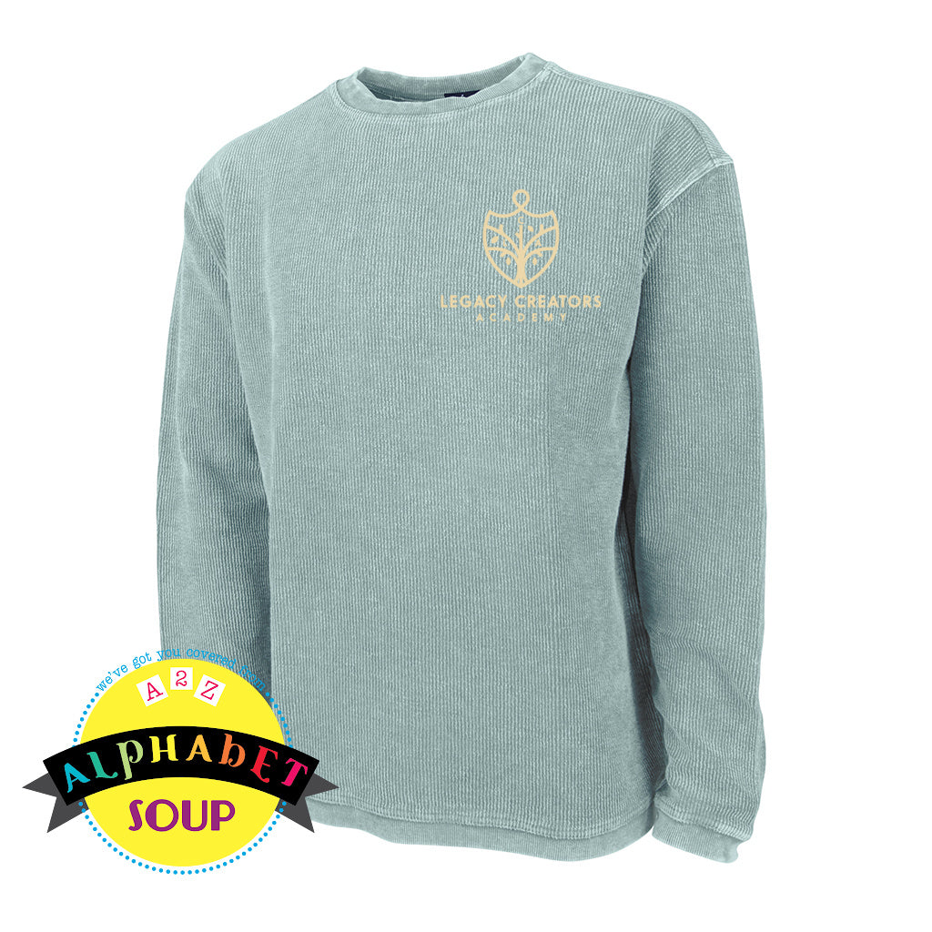 Alphabet Soup Designs has partnered with Legacy Creators Academy to bring you a selection of personalized Spirit Wear. Love the vintage look? This Camden Crewneck Sweatshirt will soon become your favorite Fall sweatshirt from Charles River Apparel! CRA is our go-to for top quality apparel! We will embroider the Legacy Creators Academy Logo on the left chest!