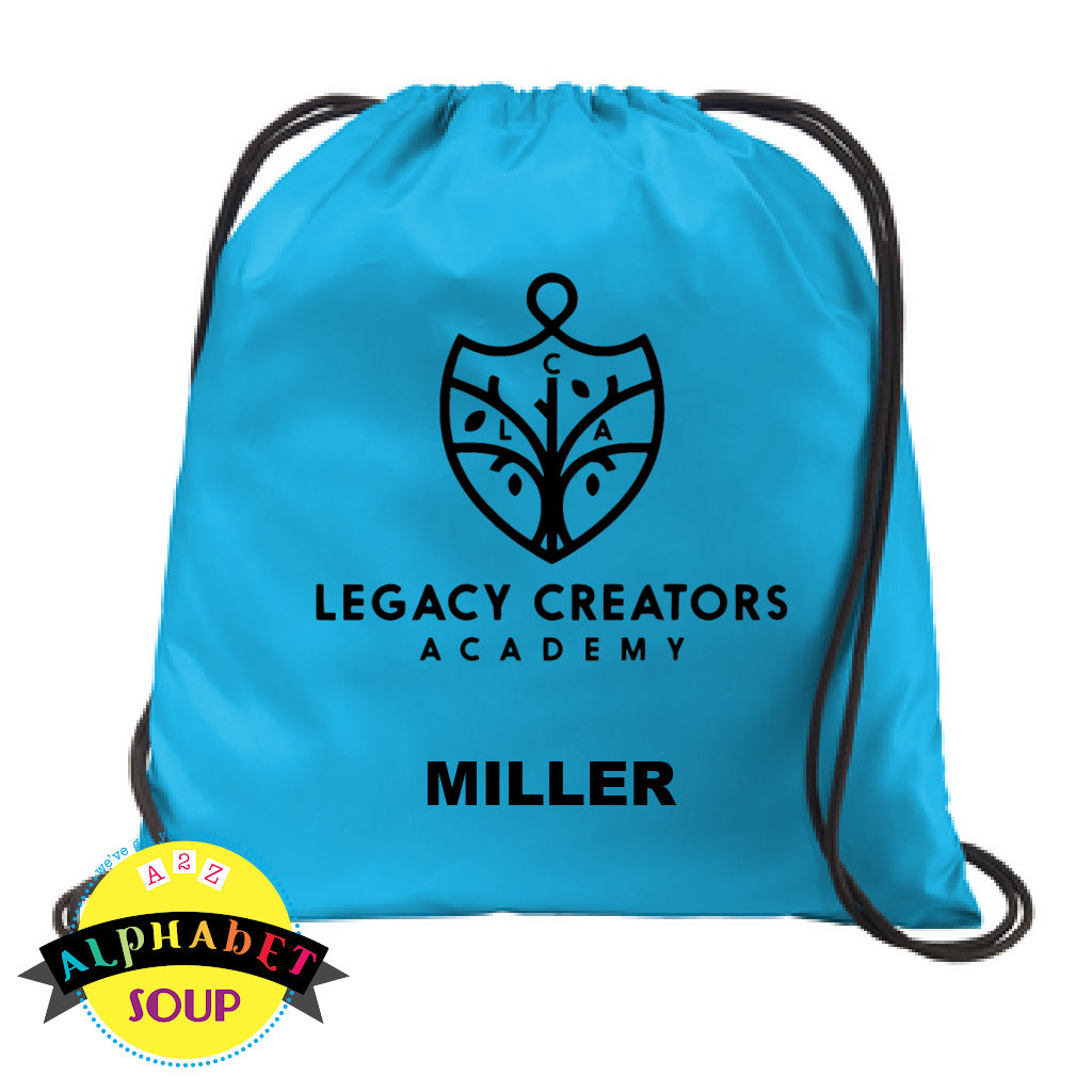 Alphabet Soup Designs has partnered with Legacy Creators Academy to bring you a selection of personalized School Spirit Wear. These drawstring bags are lightweight and easy to wear over your shoulder thanks to adjustable-length drawcord straps.