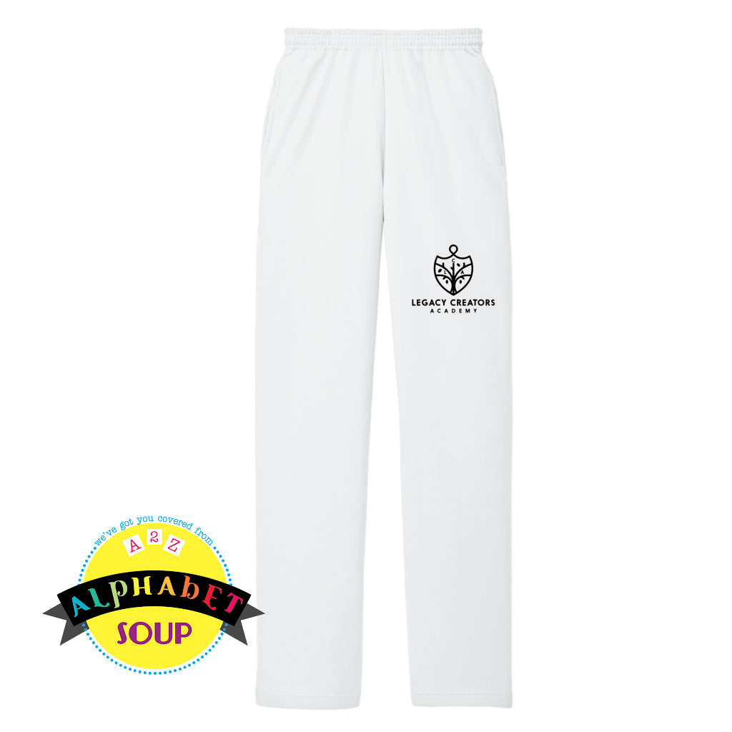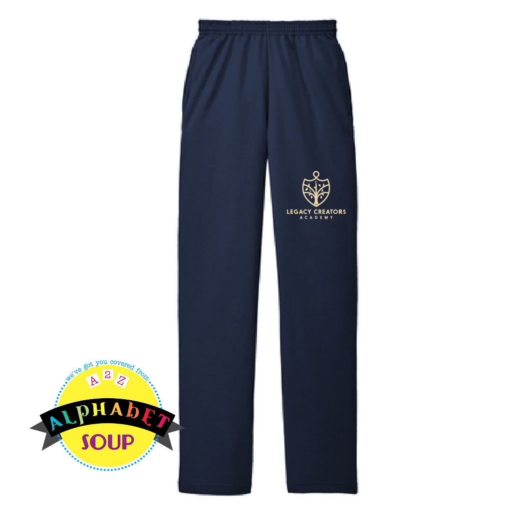 Alphabet Soup Designs has partnered with Legacy Creators Academy to bring you a selection of personalized Spirit Wear. We've included a selection of apparel from Port & Co, including these cozy open bottom cuff sweatpants with pockets! Choose your color of sweatpants and the coordinating color of vinyl will be added down the leg, with the Legacy Creators Academy.