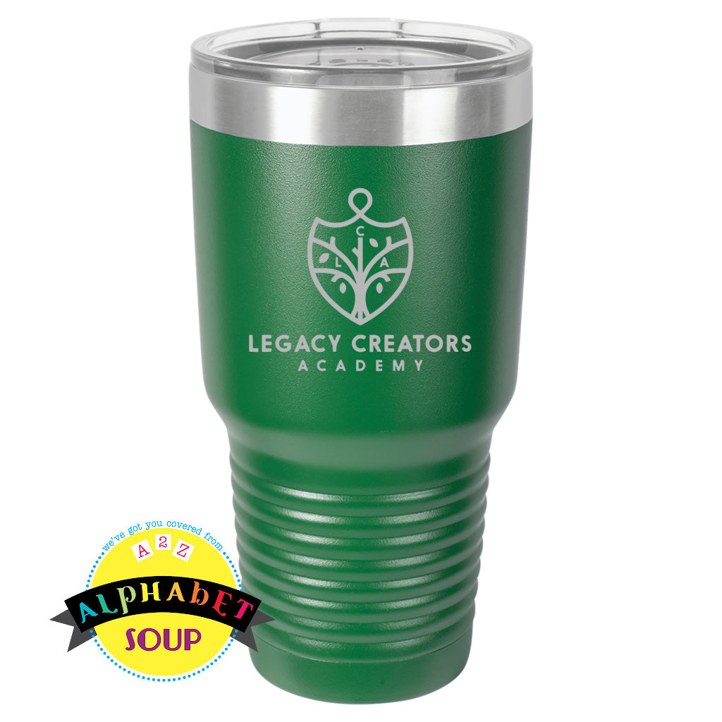 Alphabet Soup Designs has partnered with Legacy Creators Academy to bring you a selection of personalized School Spirit Wear. These Stainless steel Tumblers are laser etched for a long-lasting design. There are 2 sizes of tumblers: 30oz and 20oz.