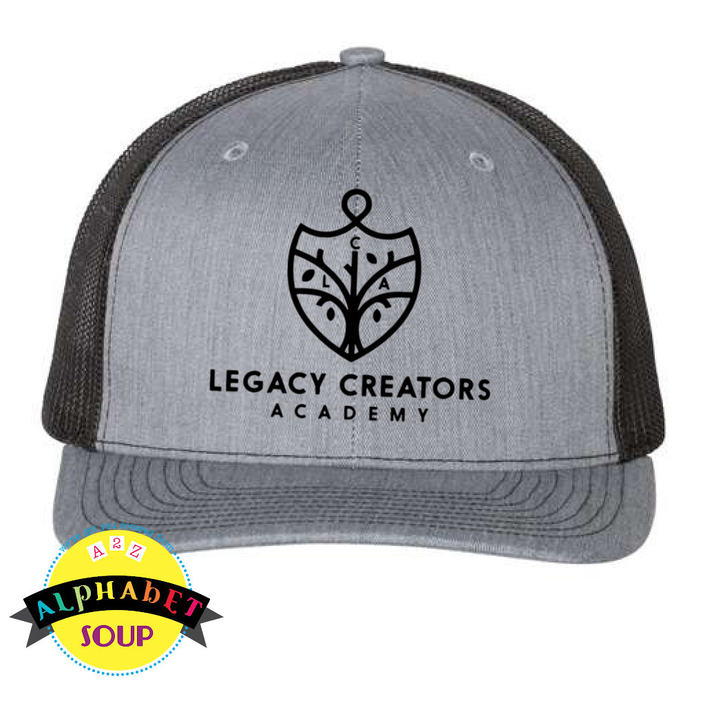 Alphabet Soup Designs has partnered with Legacy Creators Academy to bring you a selection of personalized spirit wear. The Richardson Snapback Trucker Hat is a structured six panel hat with the Legacy Creators Academy logo embroidered on the front.